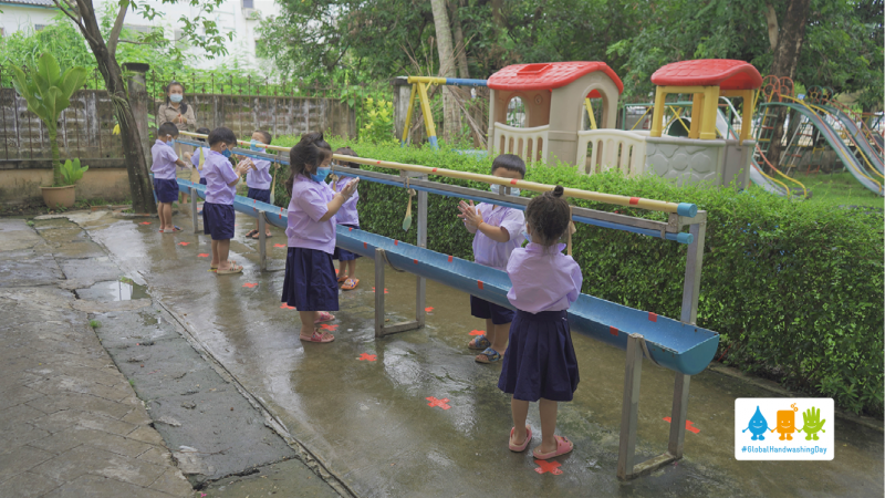 Handwashing with soap is also a major component of the Fit for School program package. The Fit for School program works to improve the health and education of school children by making schools and communities healthy places and by introducing hygienic and healthy habits through daily group practice, such as daily group handwashing with soap.
